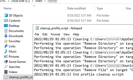 - 有关已删除文件的所有信息将保存到文本日志文件中(您可以在测试用户上调试脚本后禁用此功能);