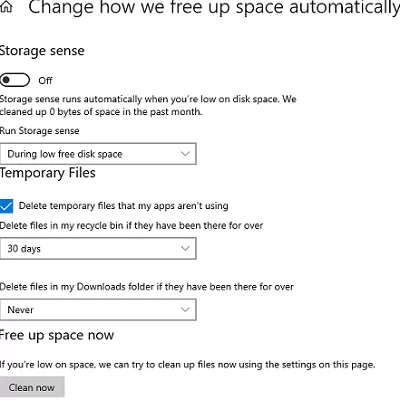 您可以使用内置的存储感自动删除 Windows Server 2019/2022 和 Windows 10/11 上的旧文件和临时文件的功能。它具有特殊的 GPO 选项,允许您清理临时文件夹和下载文件夹。