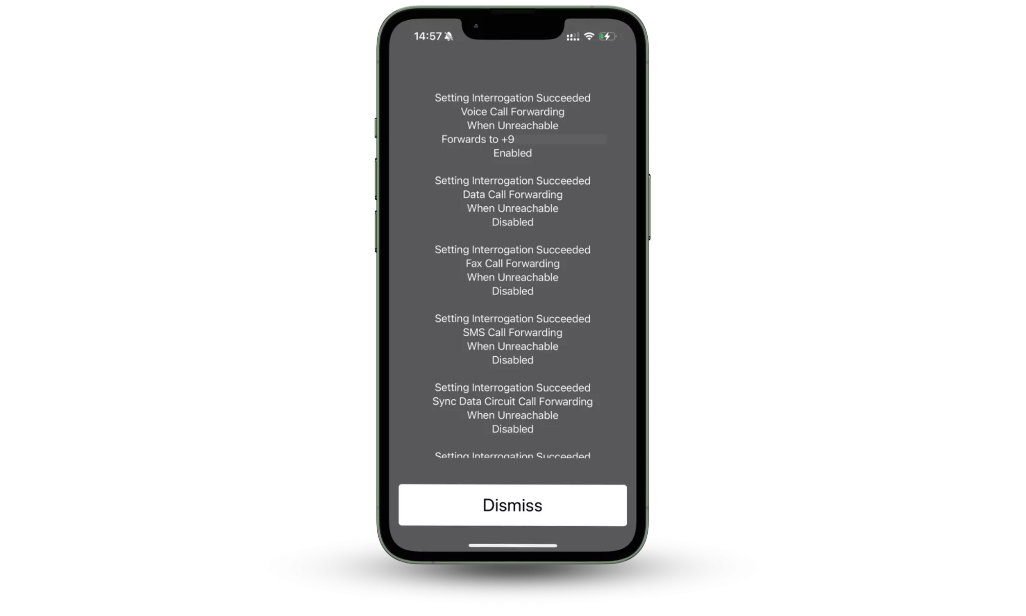 在 iPhone 上拨打*#21#,检查您的通话、消息或数据是否被第三方拦截。这是另一个有用的代码,可以了解是否有人正在监听您的通话。此代码显示语音、数据、短信和其他服务是否转发到另一个号码。如果检测到未经授权的转发,请拨打##21#将其禁用。