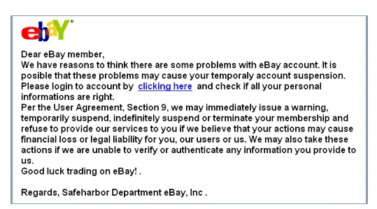 - 诈骗者会发送一封看似 eBay 官方消息的电子邮件。
