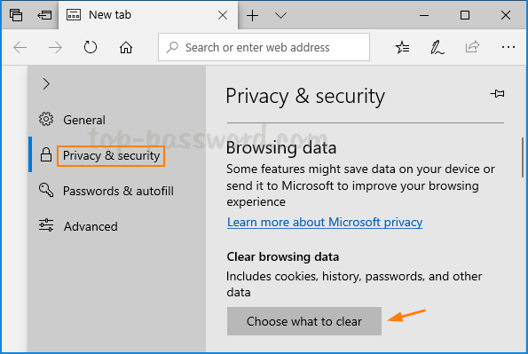 - 选择隐私与安全选项卡并单击按钮“选择要清除的内容”。