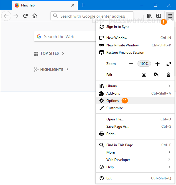 - 打开 Firefox 后,单击右上角的三行图标。在下拉菜单中,选择选项。