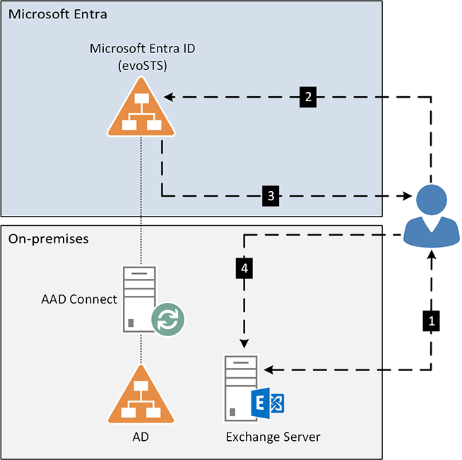 - 用户向本地 Exchange Server 提供访问令牌并获得对邮箱的访问权限。