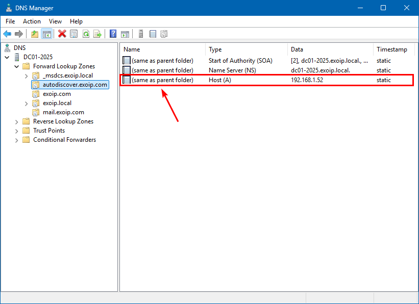 这就是它在 DNS 中的样子autodiscover.exoip.com。