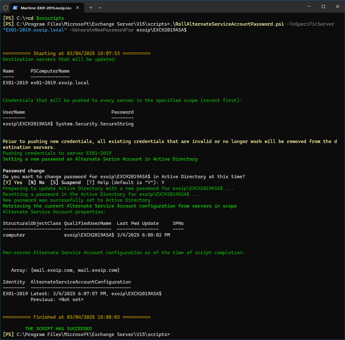 .RollAlternateServiceAccountPassword.ps1 -ToSpecificServer "EX01-2019.exoip.local" -GenerateNewPasswordFor exoipEXCH2019ASA$