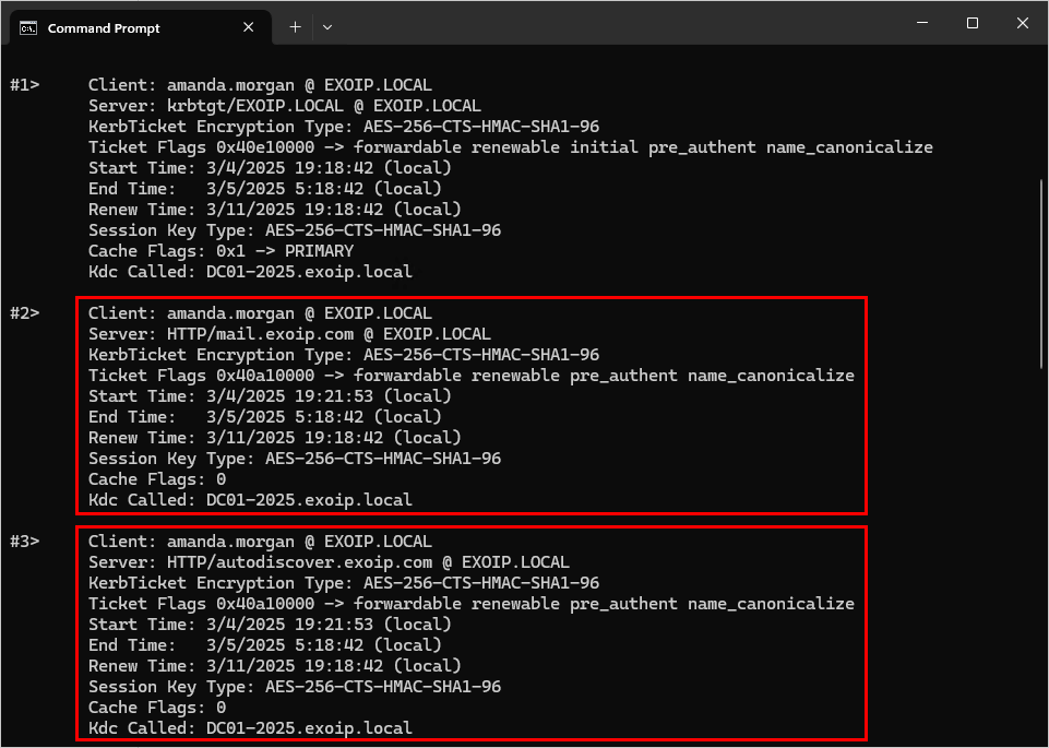 - 验证服务器上是否出现两张票证HTTP/mail.exoip.com和HTTP/autodiscover.exoip.com