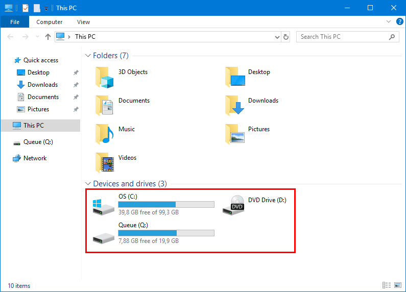 开始文件资源管理器然后去交换数据库文件夹。验证数据库文件夹显示为安装点驱动图标。