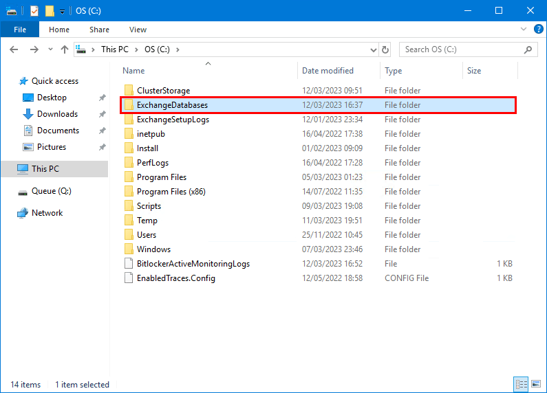 我们确实在默认安装路径上安装了Exchange服务器,这是(c :)驱动器,我们确实将邮箱数据库队列移至(Q :)驾驶。
