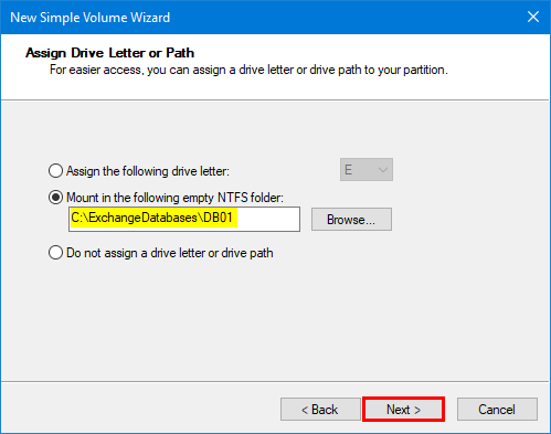 让我们看一下如何逐步为Exchange Server创建音量安装点。