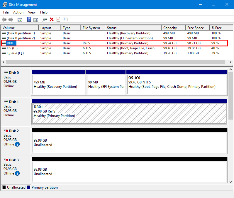 C:ExchangeDatabasesDB01 ReFS DB01 65536