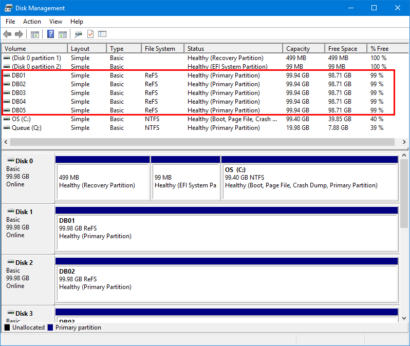C:ExchangeDatabasesDB03 ReFS DB03 65536