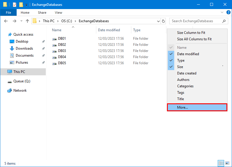 去c:交换性的文件夹。右键单击列并选择更多的。