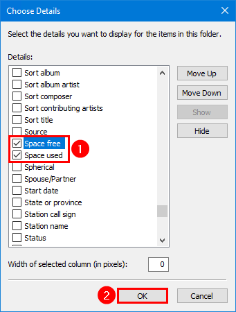 “无空间”列和所使用的空间列出现在文件夹中。一目了然地查看空间要容易得多。