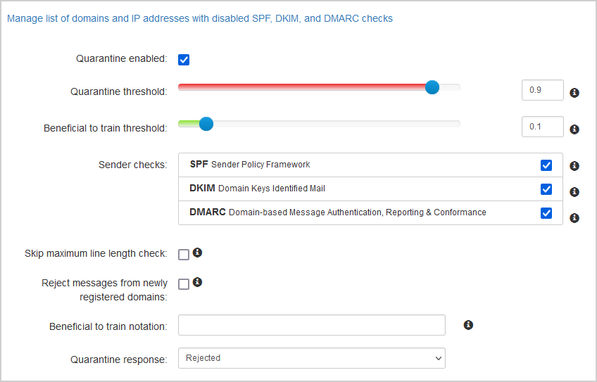 您可以定义允许和拒绝列表、设置自定义过滤器以及微调垃圾邮件敏感度级别。通过对垃圾邮件处理的精细控制,您可以平衡准确的垃圾邮件检测和最大限度地减少误报。