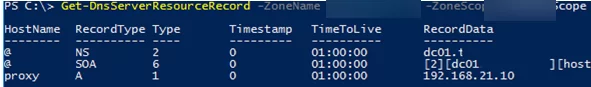 Add-DnsServerResourceRecord -ZoneName "woshub.com" -A -Name proxy -IPv4Address "192.168.11.10" -ZoneScope "HHZoneScope"