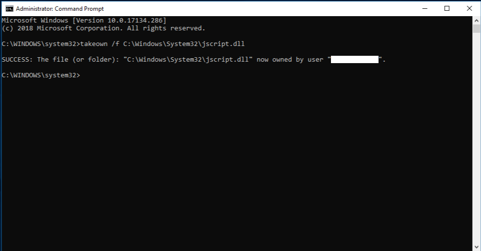 步骤 6:返回提升的命令提示符并键入:takeown /f 路径和文件名。其中“Path_And_File_Name”是损坏文件的名称。您可以键入它或从 Sfcdetails.txt 中复制它。