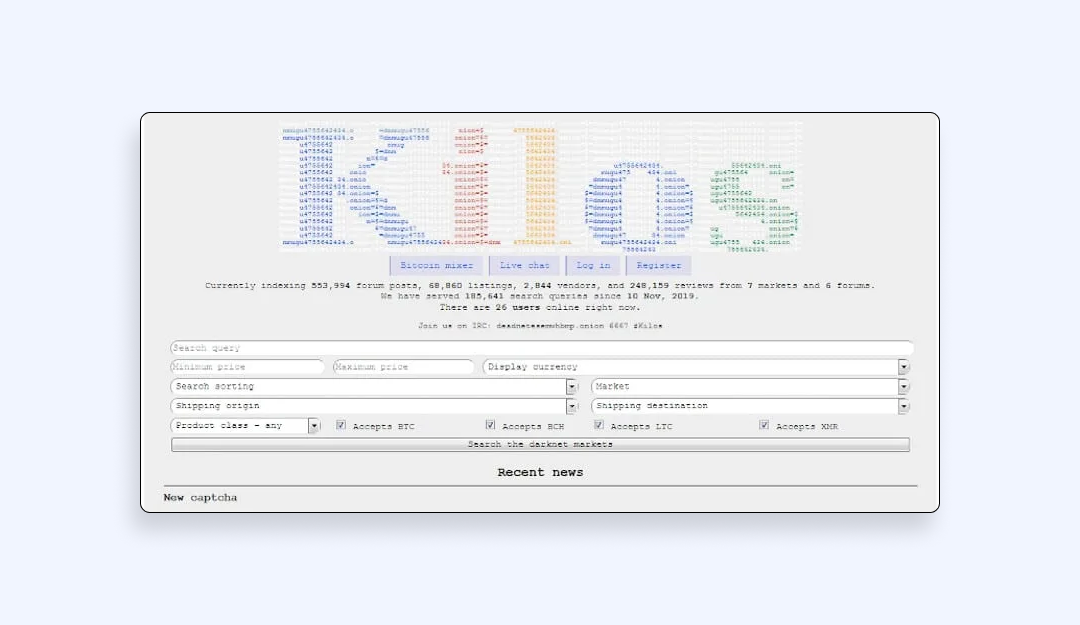 | 👍最古老的黑暗搜索引擎之一(于 2012 年推出)。 👍暗网网站的巨大索引。 👍对搜索结果没有审查。 |