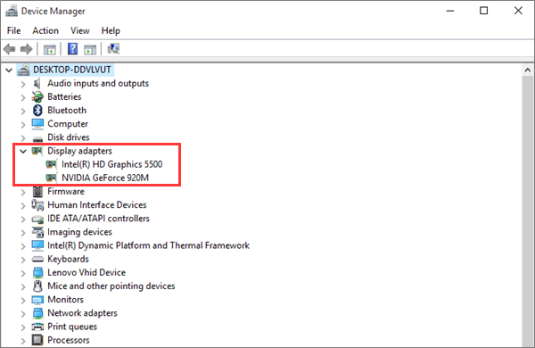 如果您在列表中看到多个适配器,则表明您的计算机具有独立 GPU。在基于 Intel 的系统上,Intel HD Graphics 是集成芯片,第二个适配器是专用图形处理器。