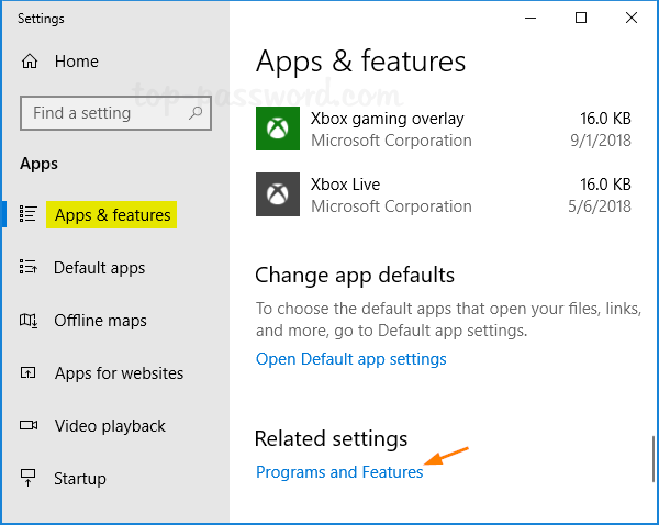 这将在新的“设置”应用程序中打开“应用程序和功能”窗格。在右侧面板上,查找“相关设置” 部分,您可以单击“程序和功能”链接访问传统的卸载程序窗口。