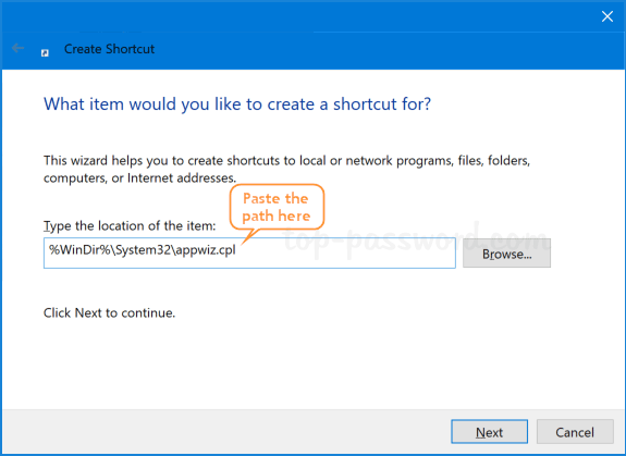 如果您想只需单击一下即可打开“程序和功能”,请按照以下步骤创建桌面快捷方式以便快速访问: