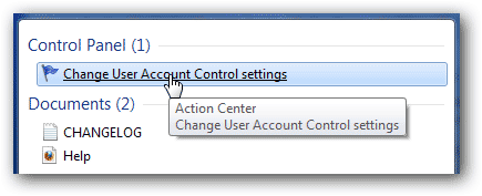 Windows 7 使处理 UAC 设置变得更加容易,事实上,如果您不想,也不必完全禁用 UAC。只需在开始菜单或控制面板搜索框中输入 UAC 即可。