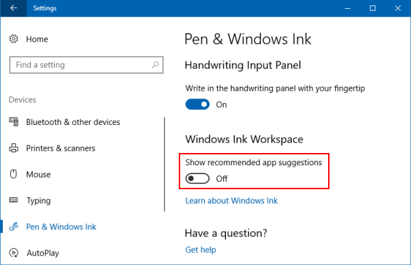 墨水并关闭“显示推荐的应用程序建议“ 选项。