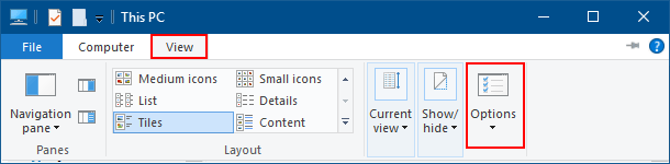 Microsoft 在文件资源管理器中显示广告。要禁用这些,请打开文件资源管理器的选项窗口。