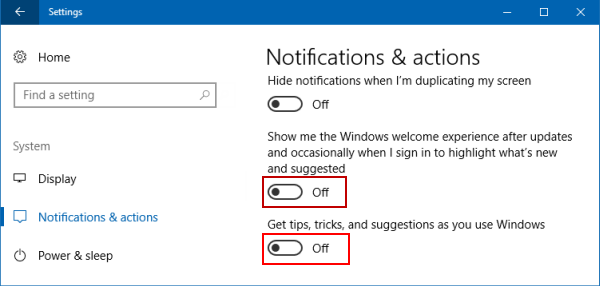 要禁用与 Windows 10 功能相关的提示和通知,请导航至设置>