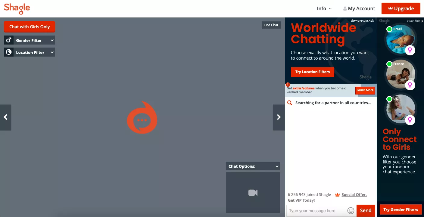 Shagle 只能通过网络浏览器使用。此外,要仅与所选性别进行交流,您必须切换到付费计划。
