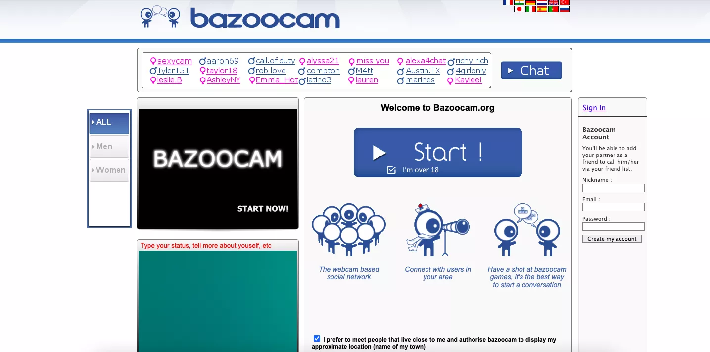 Bazoocam 是一个在线聊天网站,提供参与俄罗斯方块等多人游戏并在此过程中结识新朋友的功能。此外,如果您在进入聊天时分享您的地理位置,该平台会将您与附近的用户联系起来。 “下一步”按钮的工作原理与 Tinder 滑动类似,可让您跳过不需要的聊天并继续寻找更好的匹配。
