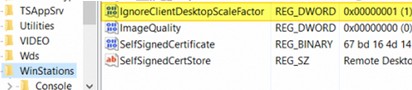 reg add "HKLMSYSTEMCurrentControlSetControlTerminal ServerWinStations" /f /v IgnoreClientDesktopScaleFactor /t REG_DWORD /d 1