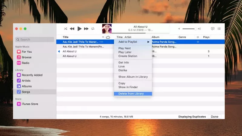 步骤 2:选择重复的歌曲并按删除钥匙。要仅将其从您的库中删除,请单击保留文件。要将其从计算机中删除,请单击移至垃圾箱。