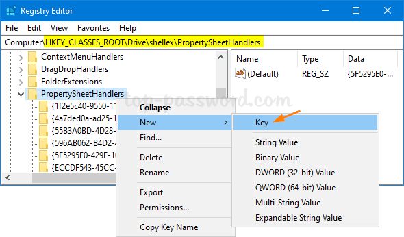 - 右键单击谷歌并选择新的->钥匙,然后将其重命名为铬合金。
