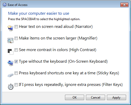从远程桌面会话中,按Windows键 + R打开运行框。类型OSK.EXE提出屏幕键盘。