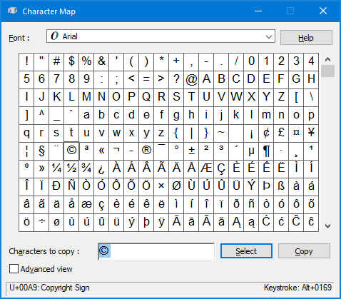 如果您运行的是 Windows 7,您可以通过以下方式访问字符映射表:开始>所有节目>配件>系统工具>字符映射表。