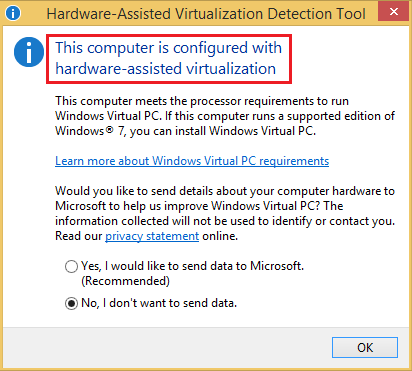 - 点击申请然后单击“确定”保存更改。然后,您可以在Windows 8上运行虚拟化检测工具来检查您的计算机是否启用了虚拟化技术(vt-x/amd-v)。