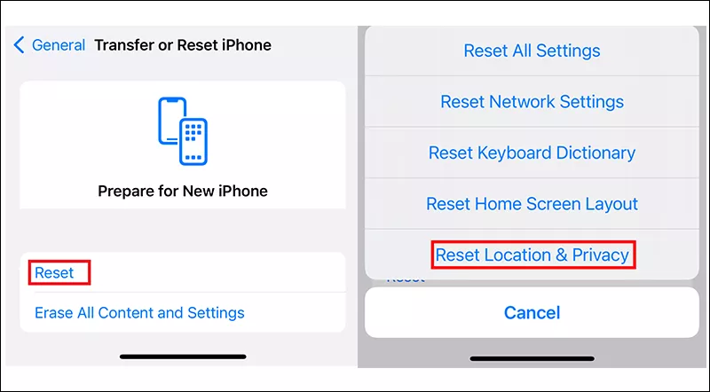 6.重置位置和隐私设置:前往“设置”>“通用”>“传输或重置”>“重置”>“重置位置和隐私”。这会将所有与位置相关的设置重置为出厂默认值。