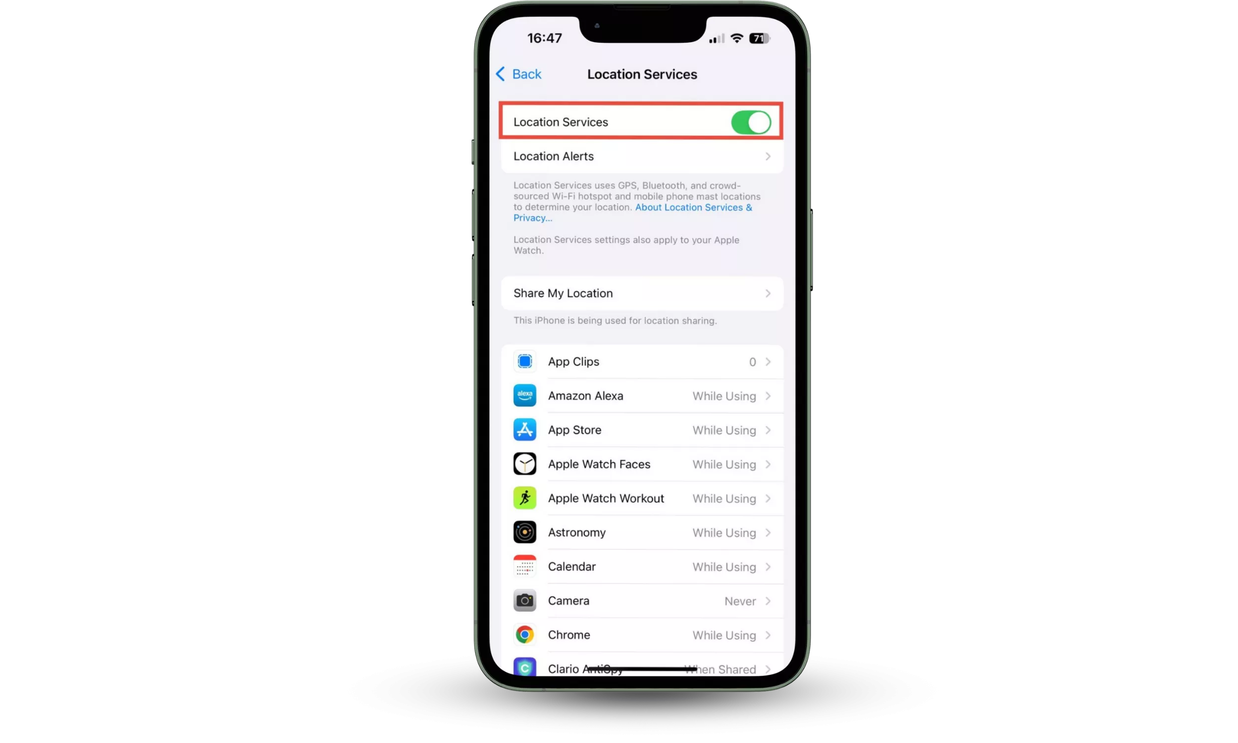 - 关闭定位服务以避免任何人跟踪您的位置。前往设置 > 隐私和安全 > 位置服务,并切换定位服务离开。详细了解如何在“查找我的 iPhone”上冻结位置。