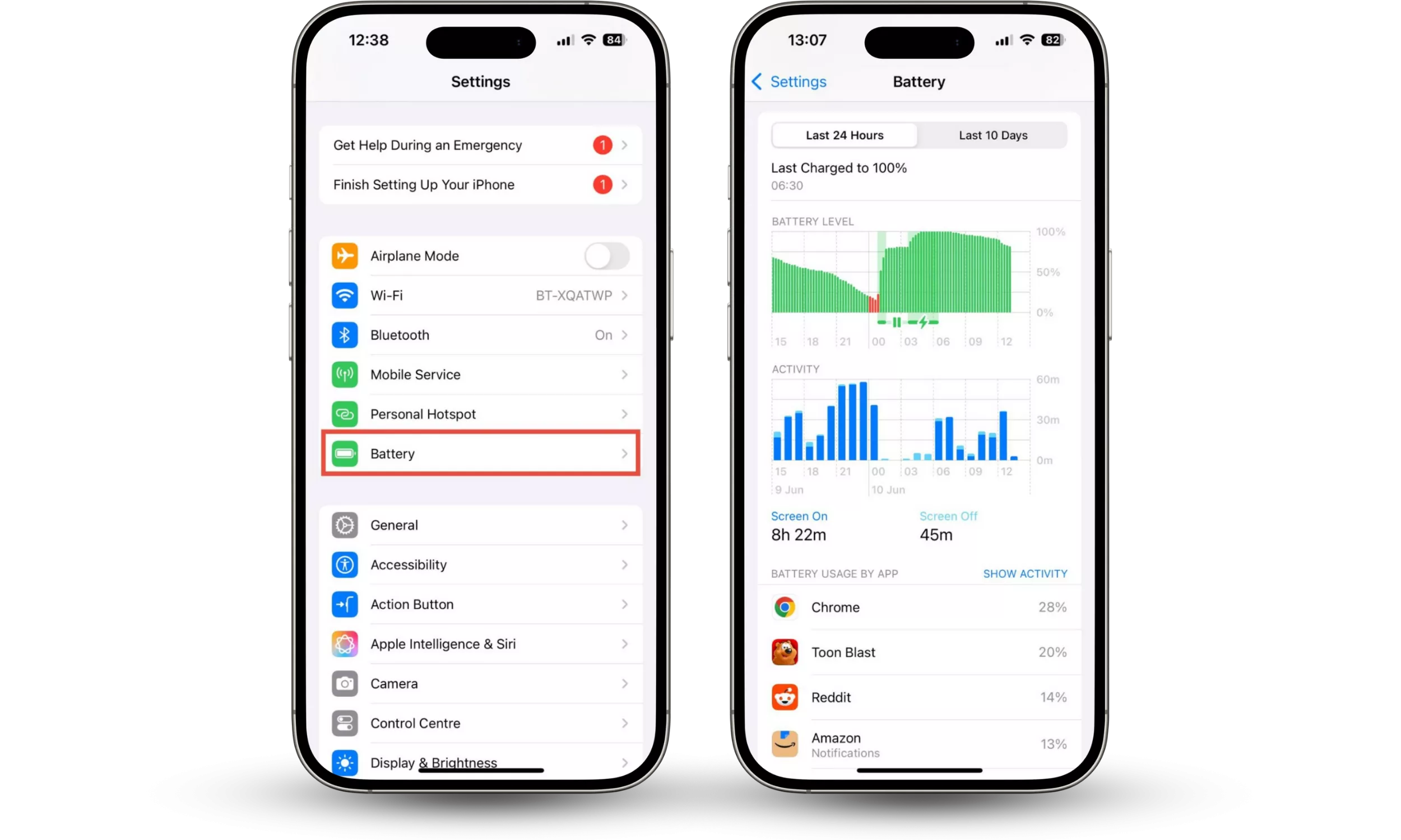 您还可以在以下位置查看您的电量使用情况设置查看电池何时耗尽以及哪些应用程序耗电最多。