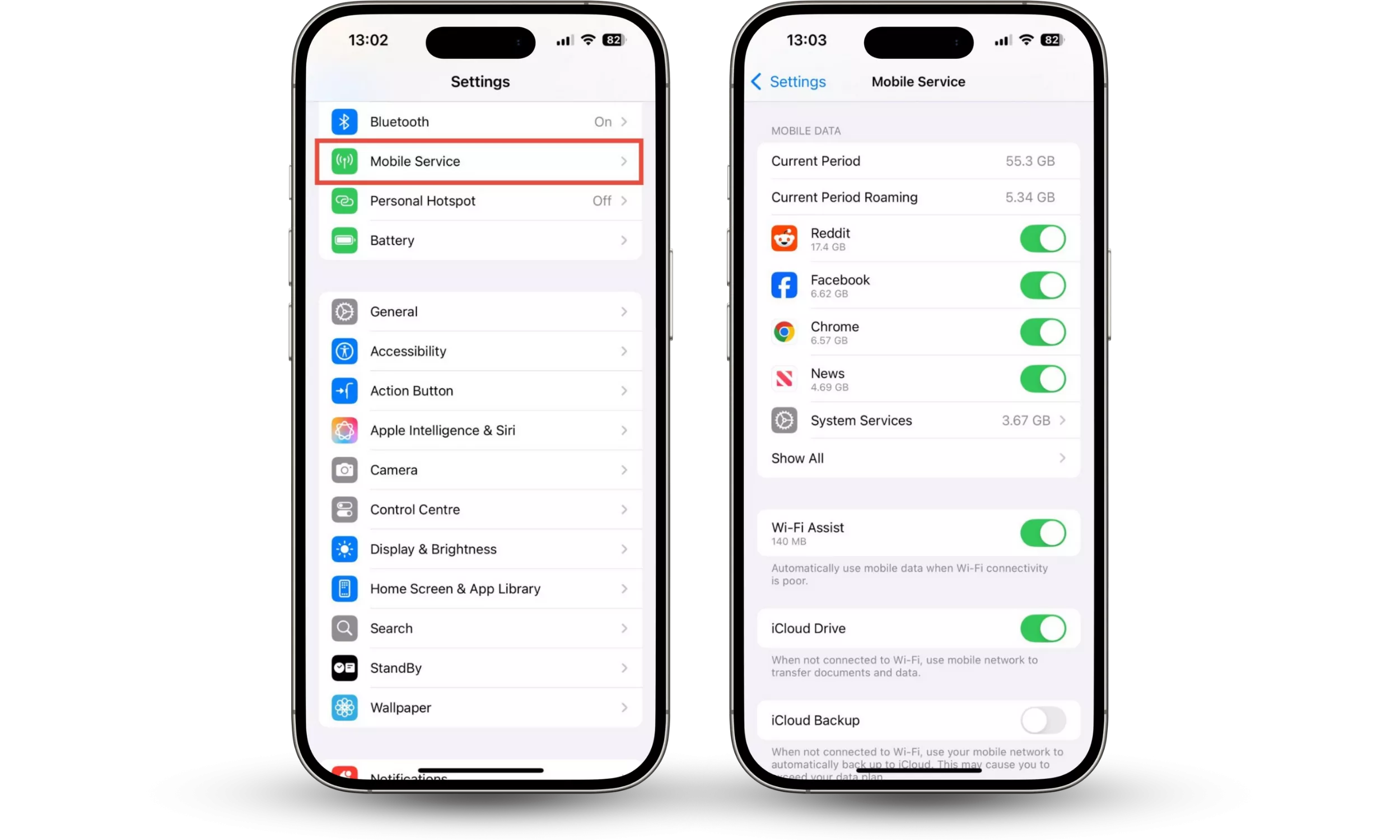 - 前往设置 > 移动服务(这可以称为蜂窝网络在某些地方)。