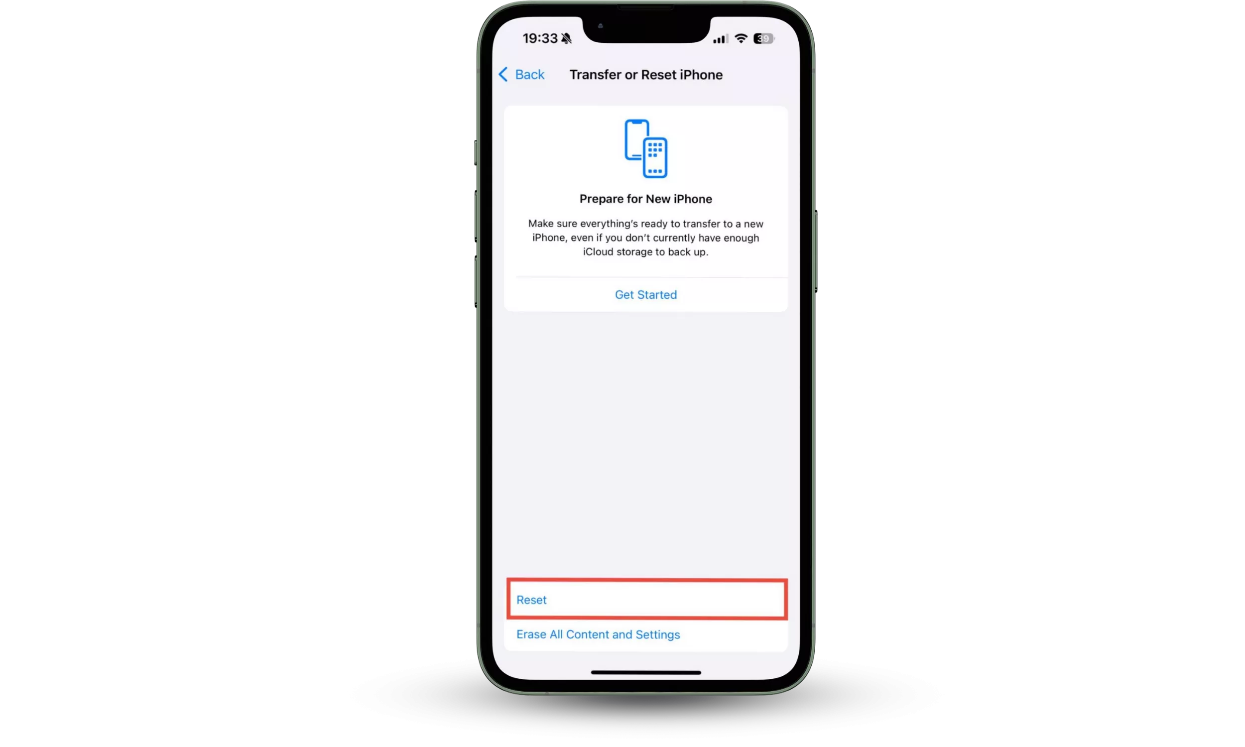 - 将您的手机恢复出厂设置如果您仍然担心间谍应用程序。恢复出厂设置会将您的手机恢复到原始设置,并删除已安装的应用程序。前往设置 > 通用 > 传输或重置 iPhone并点击重置。