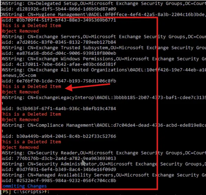 此脚本搜索相关条目,如果已删除,则将其从 AD 中删除。