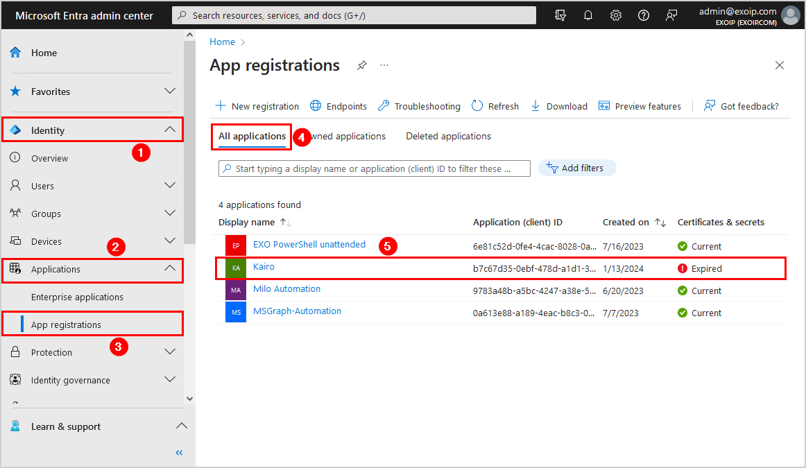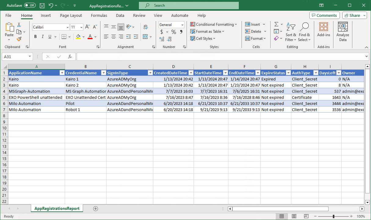 浏览所有申请并检查证书或客户端密钥的到期日期(包括其状态)需要时间。因此,最好的方法是运行 PowerShell 脚本来创建包含所有信息的报告。