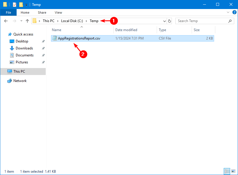 下载 Get-AppCertSecStatus.ps1 PowerShell 脚本并将其放入C:脚本文件夹。该脚本会将 CSV 文件导出到C:温度文件夹。
