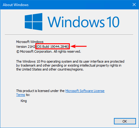 您可以从以下位置获取版本和操作系统内部版本号关于Windows屏幕 (温弗)。