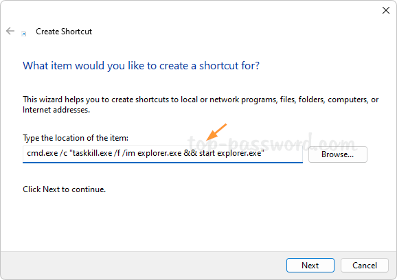 方法 5:创建桌面快捷方式以重新启动文件资源管理器