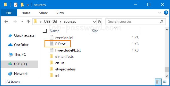 sourcesUSB 驱动器中的目录并创建一个名为的文本文件PID.txt。