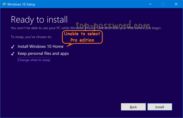 此问题通常发生在预装 Windows 10 家庭版的计算机上。由于 OEM 产品密钥嵌入到 UEFI 固件中,因此安装程序将检测 UEFI 中的产品密钥并自动选择相应版本的 Windows 10 进行安装。