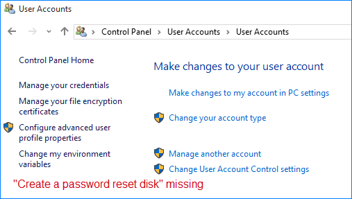 修复:创建密码重置磁盘链接在 Windows 10 中丢失或不起作用