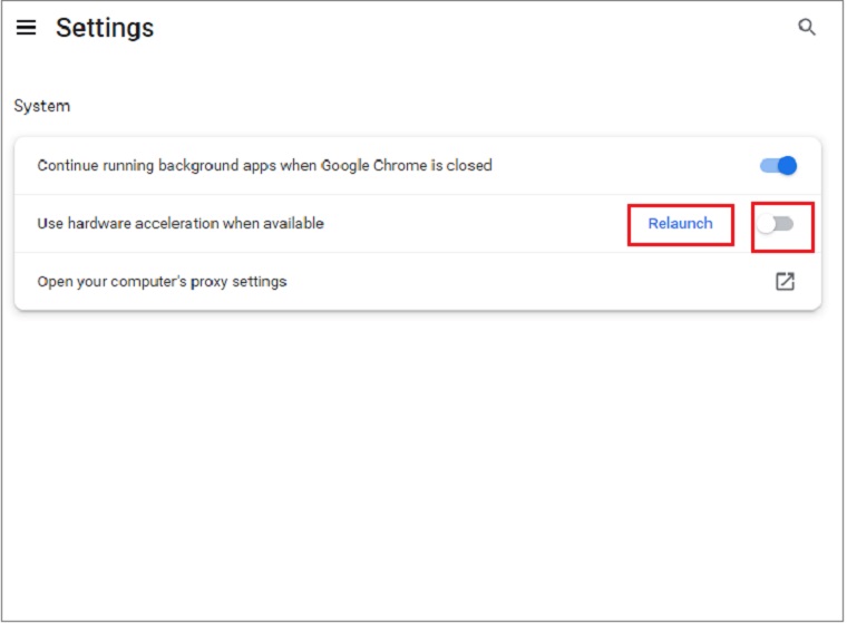 - 关闭如果可用,请使用硬件加速选项 > 单击重新启动完成该过程。